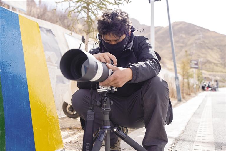 “不好意思,昨天剪視頻忙到凌晨3點(diǎn)多,又約了客人拍照,還沒來得及好好收拾下,需要我做些什么呢?這幾天給別人拍照片、視頻,突然自己被拍,我還是有點(diǎn)緊張。”在拉薩市慈覺林的“網(wǎng)紅S彎”,記者見到了剛給游客拍完視頻的向峰。他一身戶外穿搭,舉著相機(jī)時(shí),異常專業(yè)。但是結(jié)束拍攝工作放下相機(jī)的他,面對采訪一臉靦腆,還有點(diǎn)緊張。