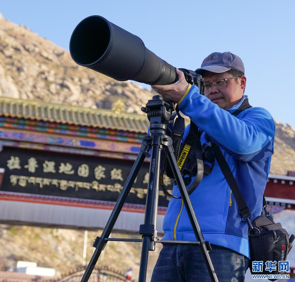西藏自治區(qū)高原生物學(xué)會(huì)成員楊樂在拉魯濕地進(jìn)行拍攝。