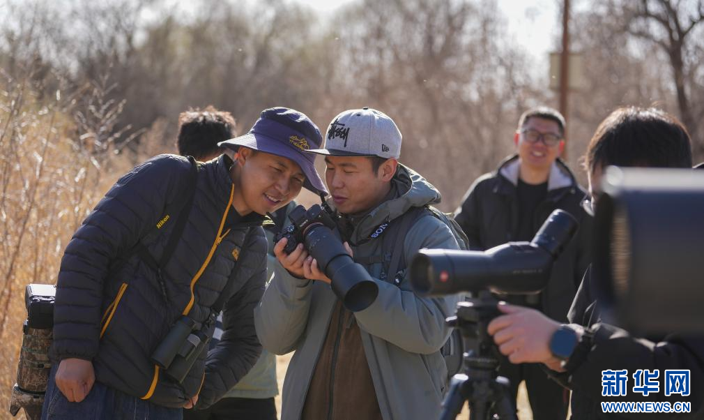 3月29日,參加采風(fēng)活動(dòng)的成員在拉魯濕地觀鳥拍照。新華社記者 晉美多吉 攝