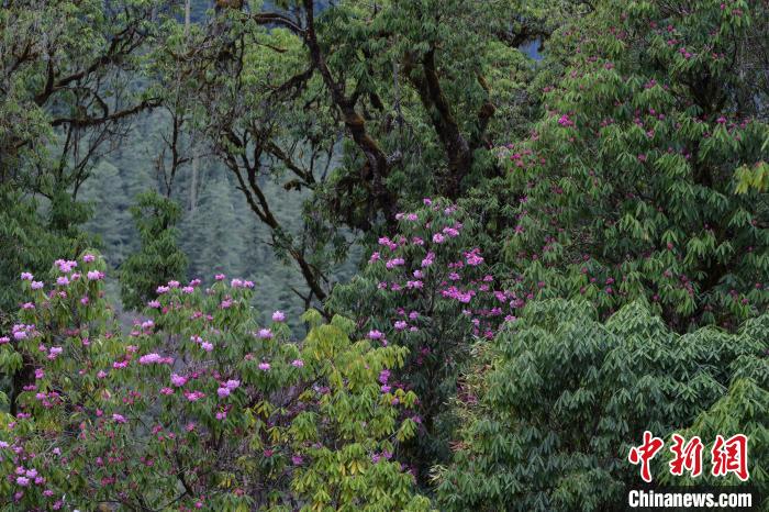4月3日,西藏自治區(qū)林芝市波密縣野生杜鵑盛放,漫山遍野,匯成夢幻花海。這里品種多樣,有波密杜鵑、淡鐘杜鵑等。花朵色彩繽紛,粉紅嬌俏、玫紅熱烈、朱紅明艷、淺紫神秘。它們廣泛分布于山坡、河谷、森林,與雪山、溪流相互映襯,勾勒出絢麗的春日盛景 。中新社記者 貢嘎來松 攝