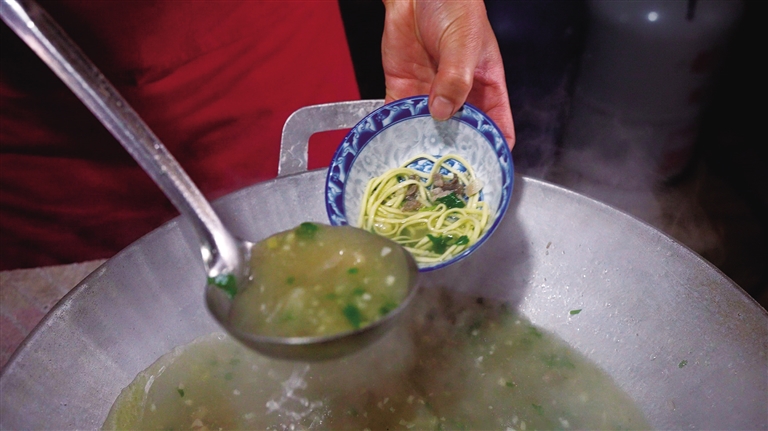 2010年,鹽井加加面被列入西藏自治區(qū)級非物質(zhì)文化遺產(chǎn)代表性名錄。37歲的果拉卓瑪,是這項技藝的傳承者之一。她回憶道,早年父母在街邊支攤賣面時,加加面只是再尋常不過的一道家常面食。如今,這碗面被賦予了文化符號的意義——食客們比拼碗數(shù),最高紀錄達147碗,若破紀錄,還能終生免費吃面。“石頭計數(shù)、民歌敬酒,這些傳統(tǒng)習俗讓吃面變成了一場熱鬧的儀式。”果拉卓瑪笑著說。