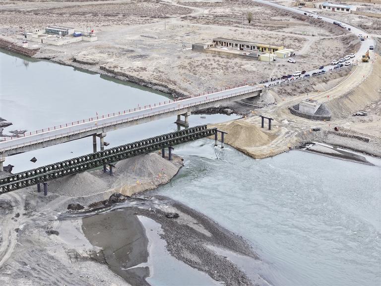 近日,記者從自治區(qū)交通運(yùn)輸廳了解到,受1月7日定日6.8級(jí)地震影響,國(guó)道349線上的拉孜雅魯藏布江大橋(簡(jiǎn)稱拉孜雅江大橋)損壞嚴(yán)重,封閉禁行,在該橋旁邊設(shè)置的臨時(shí)保通便道鋼架橋已完成全部工程量的90%,即將完工通車。