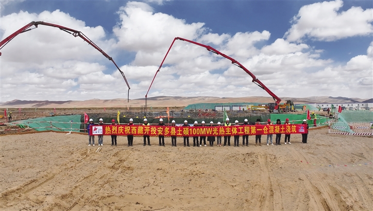 安多土碩光熱光伏一體化項目聚光集熱塔基礎(chǔ)完成第一倉混凝土澆筑。圖由趙苑余提供