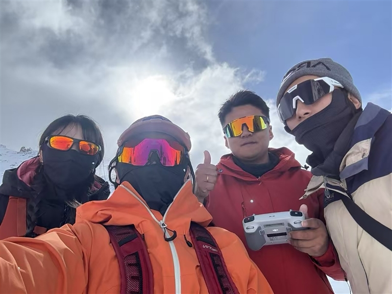 今年是“95后”貢曲羅杰第二次登頂,盡管去年參加過洛堆峰登山探險活動,可雪山的魅力依舊讓他深深著迷?!拔铱粗鵁o人機拍攝下登山者們依次攀爬的過程,莫名激動。而當我將焦距調(diào)至七倍對準山頂時,雪山更是讓我震撼,這就是我一直想要記錄的畫面?!必暻_杰說。為了能精準調(diào)整相機參數(shù),他放棄了保暖必需的手套,一心專注拍攝,直至完成任務。此次攀登洛堆峰,貢曲羅杰和阿旺尼瑪拍攝了大量出彩的視頻和圖片。