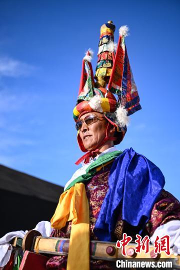 圖為當(dāng)雄牧民身著節(jié)日盛裝參加迎賓儀式。中新社記者 貢嘎來松 攝