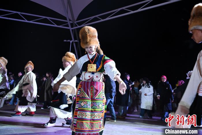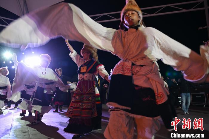 圖為“情定當(dāng)雄”篝火鍋莊晚會(huì)文藝演出現(xiàn)場。中新社記者 貢嘎來松 攝