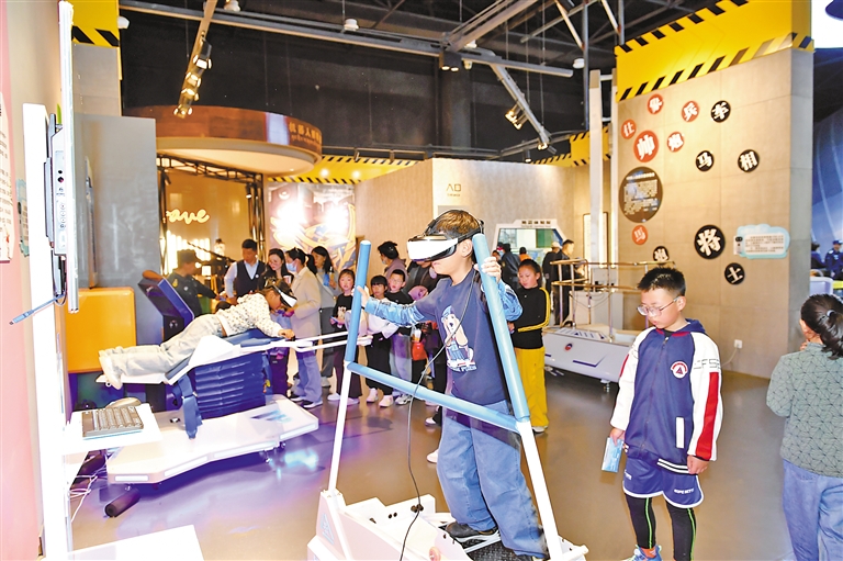 小朋友們在西藏自然科學(xué)博物館內(nèi)體驗VR設(shè)備。