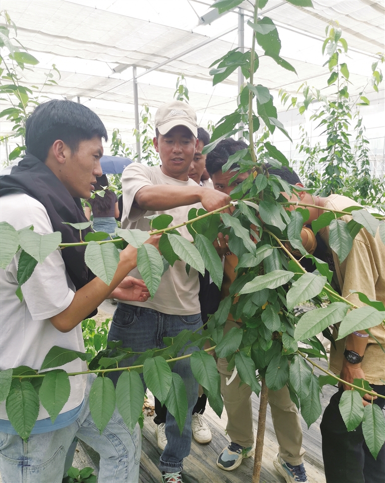 剛進(jìn)入公司時,格桑群培還是農(nóng)業(yè)領(lǐng)域的“小白”。為了打好基礎(chǔ),他跟著公司生產(chǎn)技術(shù)人員在果園里摸爬滾打,學(xué)習(xí)果樹栽培、修剪技術(shù)等。休息時間,別的同事在娛樂放松,他卻一頭扎進(jìn)技術(shù)資料里,如饑似渴地學(xué)習(xí)有關(guān)果樹標(biāo)準(zhǔn)化種植的知識?!肮麡湓耘嗑拖耩B(yǎng)育孩子,需要足夠的細(xì)心和耐心。”格桑群培常常這樣說,也一直這樣做。他不怕苦、不怕累,從最基層的臟活、累活干起,憑借著自己的努力和上進(jìn),逐漸成長為公司的技術(shù)骨干,如今已擔(dān)任生產(chǎn)技術(shù)部副部長。