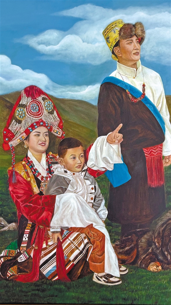 澤巴珍油畫作品《雪域情》。
