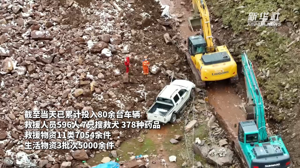 事件發(fā)生后,各方救援力量趕赴現(xiàn)場,開展救援工作。6月5日上午6時,搜救挖掘繼續(xù)開展,截至5日18時已累計投入80余臺車輛、596人、7只搜救犬、378種藥品、救援物資11類7054余件、生活物資3批次5000余件。清理堆積體約5000方,挖掘出2輛汽車,搜尋到3名遇難者遺體,未搜尋到7名失聯(lián)人員。