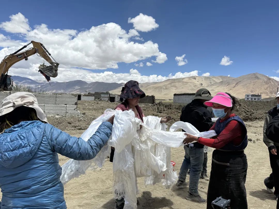 原來,吉翁村有個(gè)不成文的規(guī)定,誰家挖基坑,便會(huì)給施工隊(duì)獻(xiàn)哈達(dá)、送飲料,以表感激。