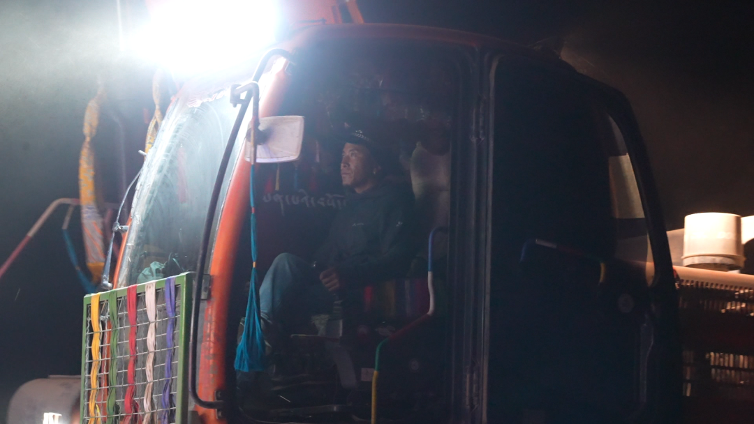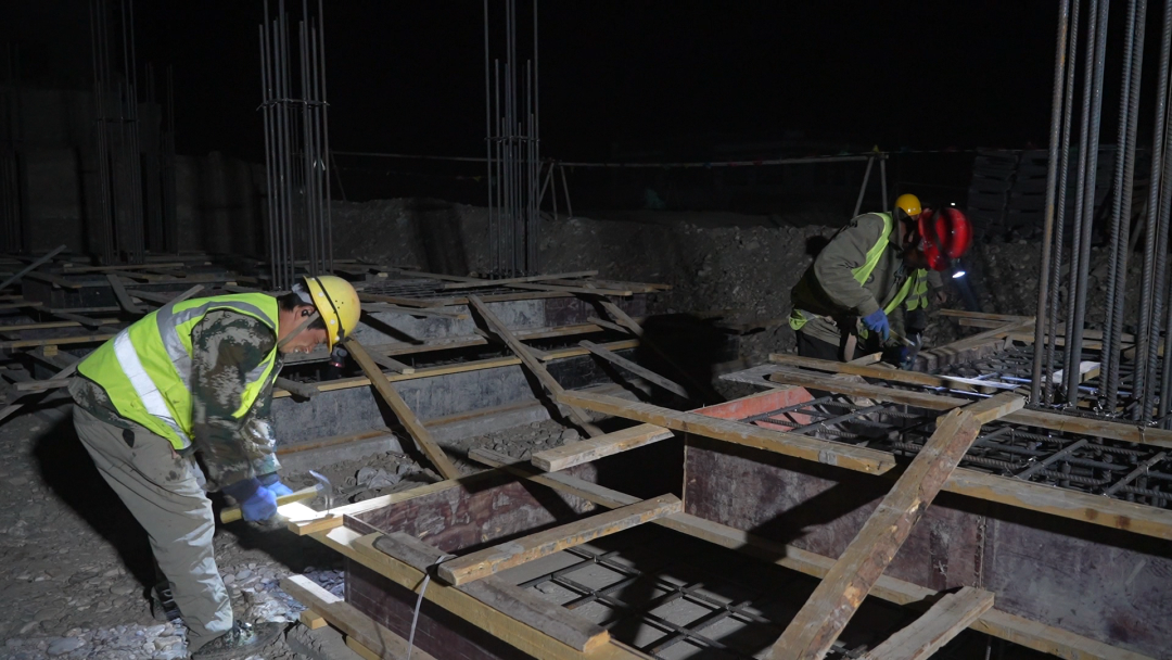 當(dāng)夜幕籠罩村莊,大風(fēng)呼嘯,旺加仍未歸家。他戴上安全帽,出現(xiàn)在燈火通明的工地。機(jī)械轟鳴,人聲交織。旺加仔細(xì)巡視基坑、鋼筋,履行監(jiān)督之責(zé);順手遞工具,用帶著藏語(yǔ)腔調(diào)的漢語(yǔ)講著接地氣的笑話驅(qū)散疲憊。