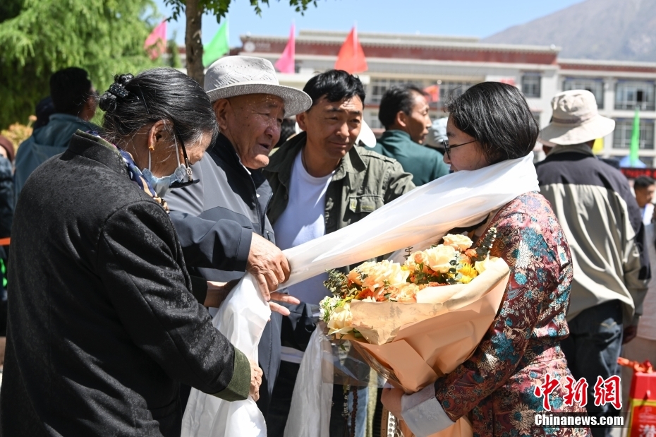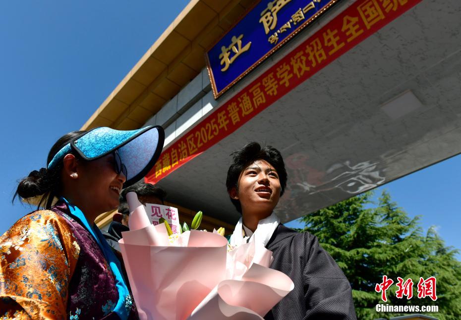 6月9日,西藏拉薩江蘇實驗中學(xué)考點外親友為考生送上哈達(dá)。當(dāng)日,西藏自治區(qū)2025年普通高考完成所有科目考試,2025年西藏高考落下帷幕。中新社記者 貢嘎來松 攝