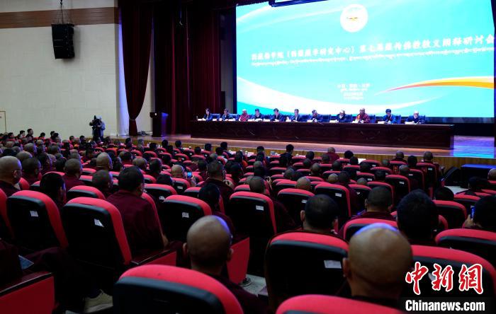 圖為6月12日,西藏佛學(xué)院(西藏藏學(xué)研究中心)第七屆藏傳佛教教義闡釋研討會現(xiàn)場。李林 攝