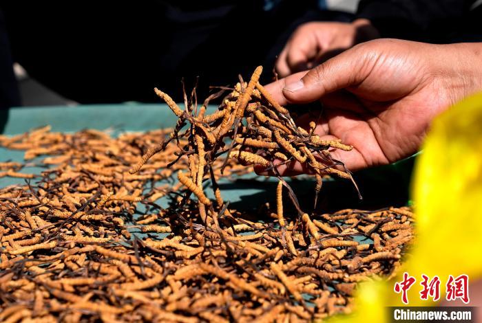 圖為6月13日,蟲(chóng)草商們挑選蟲(chóng)草。中新社記者 李林 攝