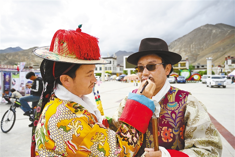 在日喀則市喜迎西藏自治區(qū)成立60周年暨2025年“文化和自然遺產(chǎn)日”非遺宣傳展示活動(dòng)中,來自全市各縣(區(qū))的19支藏戲隊(duì)輪番展演,各色非遺產(chǎn)品集中亮相,為現(xiàn)場觀眾獻(xiàn)上了一場“非遺盛宴”。