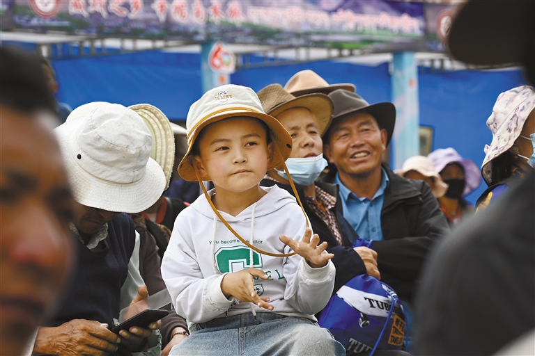 認(rèn)真觀看藏戲表演的小觀眾。