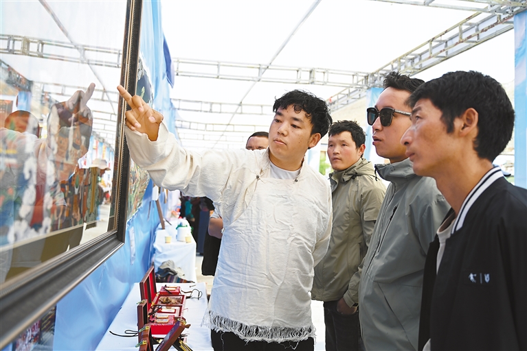 在欣賞視聽盛宴的同時(shí),國家級(jí)非遺項(xiàng)目江孜卡墊織造技藝、自治區(qū)級(jí)非遺項(xiàng)目牛村陶器制作技藝、市級(jí)非遺項(xiàng)目恰哇編織技藝等50個(gè)非遺項(xiàng)目,以及民族手工業(yè)產(chǎn)品、南木林縣縣級(jí)非遺產(chǎn)品集中展覽展銷,備受消費(fèi)者青睞。各非遺產(chǎn)品展銷點(diǎn)收入不斷、訂單不斷,經(jīng)初步統(tǒng)計(jì),活動(dòng)現(xiàn)場非遺產(chǎn)品銷售總額達(dá)45萬余元。