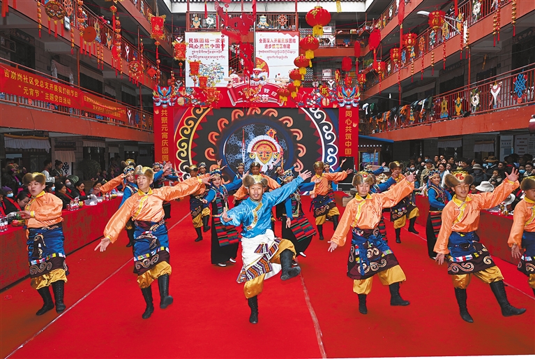 2025年2月23日,吉崩崗街道德賽大院開展慶元宵活動,雪巴拉姆藝術(shù)團舞蹈演員正在表演節(jié)目。(資料圖片)
