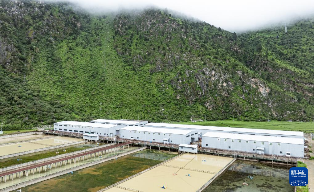 這是西藏高峰生態(tài)科技有限責(zé)任公司的亞?wèn)|鮭魚養(yǎng)殖產(chǎn)業(yè)園(6月19日攝,無(wú)人機(jī)照片)。新華社記者 丁增尼達(dá) 攝