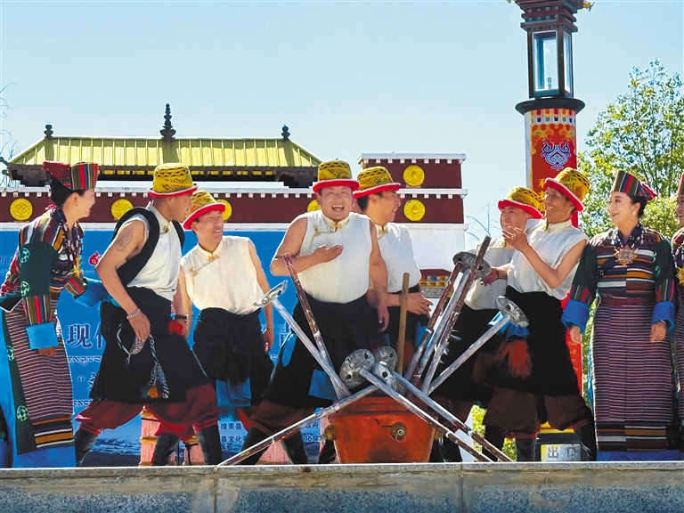 2008年,扎扎服飾被正式列入國家級非物質文化遺產名錄。措美縣投資建立的扎扎服飾傳習所于2015年正式運營。至此,這門老手藝有了“大本營”,還成了村里增收的“金疙瘩”。如今,扎扎服飾不只是村里婦女逢年過節(jié)的盛裝,更是吸引游客了解扎雜村的招牌。措美縣還以扎扎服飾的傳說為原型,創(chuàng)作歌舞劇《文成公主草原情》《扎扎情緣》,制作傳承保護影像,讓這項高原上的獨特技藝與文化久久流傳。