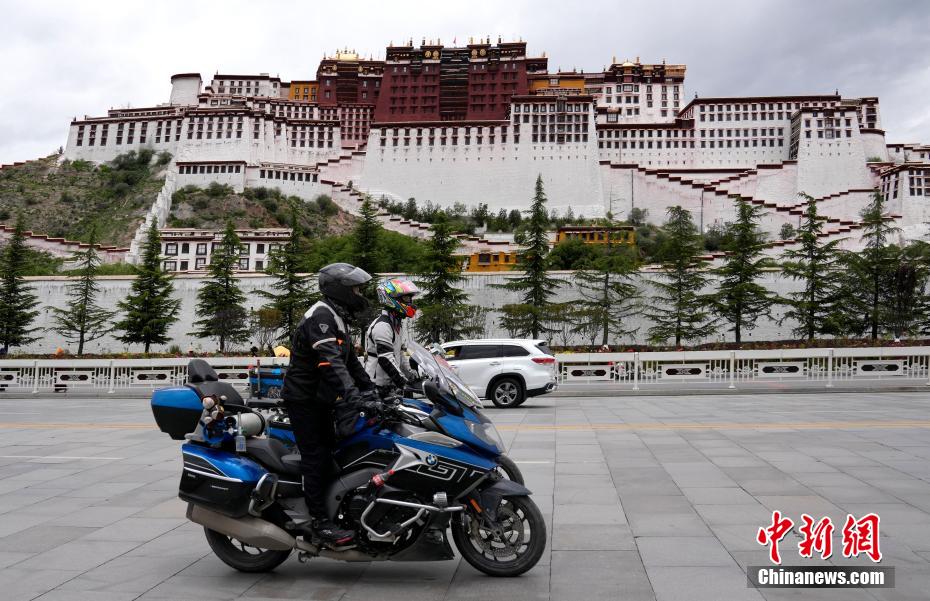 7月3日,摩旅愛好者自駕經(jīng)過布達(dá)拉宮。隨著暑期旅游旺季的到來,進(jìn)藏自駕游成為旅行愛好者的熱門選擇。房車愛好者、摩旅愛好者選擇自駕抵達(dá)拉薩,專程途經(jīng)布達(dá)拉宮打卡。中新社記者 李林 攝