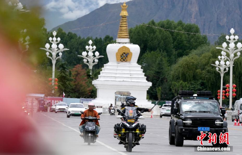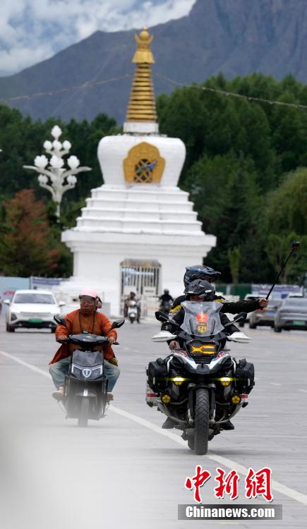 7月3日,摩旅愛好者行駛在拉薩街頭。隨著暑期旅游旺季的到來,進(jìn)藏自駕游成為旅行愛好者的熱門選擇。房車愛好者、摩旅愛好者選擇自駕抵達(dá)拉薩,專程途經(jīng)布達(dá)拉宮打卡。中新社記者 李林 攝