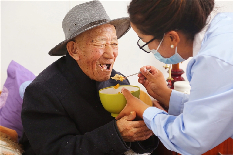 陽光穿過明凈的玻璃窗,溫柔地灑在80歲失明老人拉巴次仁手中的木碗上。他捧著熱騰騰的飯菜,幸福的笑容在臉上肆意綻放:“在這里,一日三餐有人端到跟前,臟衣服剛換下就有人洗凈送回,生病也不愁沒人管?!崩先搜哉Z間滿是對生活的感激。