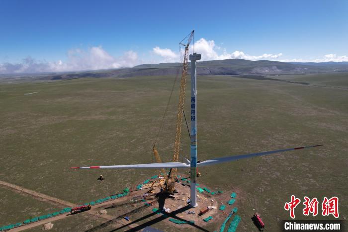 在海拔4700米的藏北高原,隨著13#風機葉輪與機艙精準對接,西藏開投色尼區(qū)曲果嘎姆200MW風電項目首臺風電機組5日在西藏那曲順利完成吊裝。