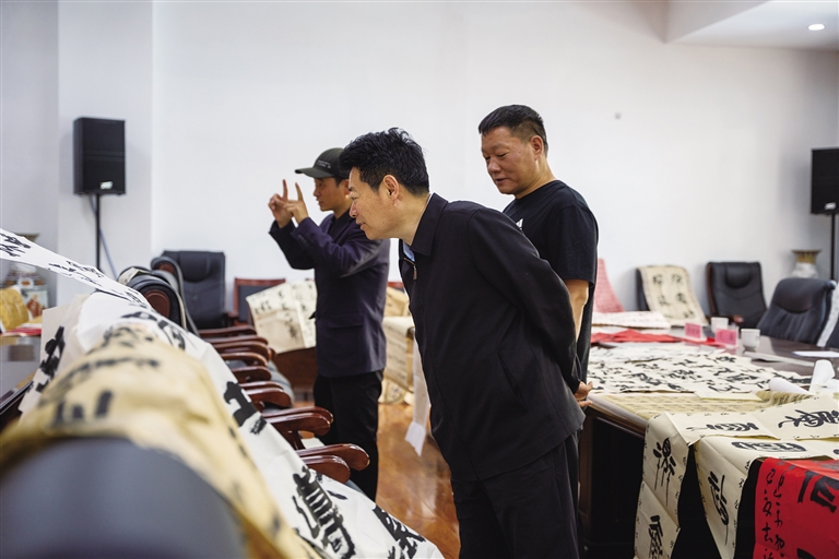 下午的漢文書法評選同樣精彩。兩百多幅參選作品,涵蓋楷書、行書、隸書、草書、篆書五種字體,風(fēng)格多樣,展現(xiàn)出扎實的書法功底和深厚的文化底蘊(yùn)。中國書協(xié)會員、西藏書協(xié)理事田中鶴認(rèn)真地審閱著每一幅作品,他感慨道:“活動自啟動便獲全國書法愛好者廣泛關(guān)注,參賽作品不僅數(shù)量可觀,質(zhì)量更值得肯定。”其中,一等獎的楷書作品工整端莊,緊扣“民族團(tuán)結(jié)”主題,既彰顯書法藝術(shù)魅力,又傳遞出“高原紅石榴”象征的團(tuán)結(jié)奮進(jìn)精神,給評審團(tuán)留下深刻印象。