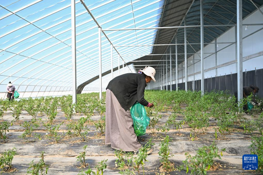 7月19日,西藏扎囊縣綠之源現(xiàn)代農(nóng)業(yè)科技股份有限公司的員工在大棚內(nèi)采摘有機(jī)辣椒。新華社記者 李鑫 攝