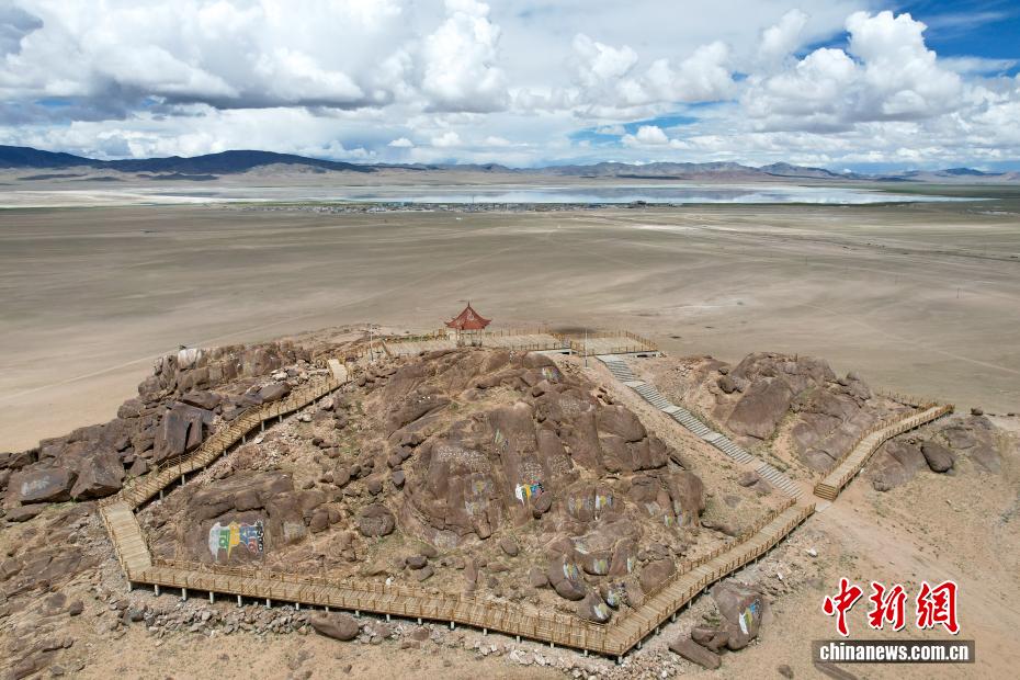 7月20日,在西藏阿里地區(qū)革吉縣鹽湖鄉(xiāng)拍攝的巖畫遺址公園,該遺址公園是“鹽羊古道”全域旅游景點之一。一千多年前,阿里地區(qū)有50多家駐扎的鹽幫,將自然鹽用羊馱牛背邊放牧邊運輸?shù)姆绞?,運送到普蘭、日喀則、印度、尼泊爾等地,并用以物易物的方式換回青稞、磚茶、布料等日常生活所需的物品,從而孕育了遠負盛名的“鹽羊古道”傳奇。近年來,當?shù)亻_辦粗鹽巴加工廠、打造“鹽羊古道”旅游品牌等方式,使千年“鹽羊古道”煥發(fā)新生機。(無人機照片)中新社記者 張祥毅 攝