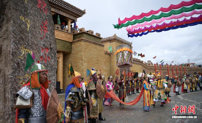 2019年9月16日,四川甘孜縣格薩爾王城暨百村產業(yè)基地舉行開城儀式,城內以格薩爾故事打造的景觀小品體驗地有1000余處,游客可聽《格薩爾》說唱、看《格薩爾》藏戲等。中新社記者 劉忠俊 攝
