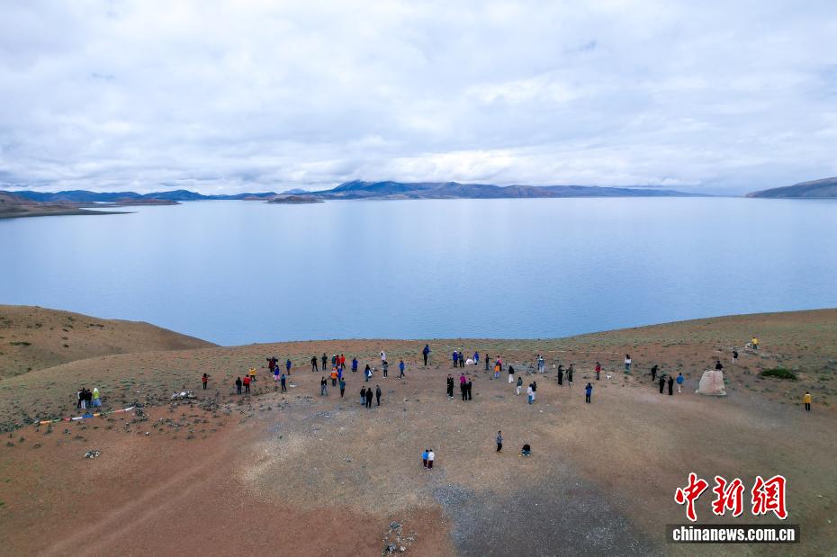 7月22日,游客游覽瑪旁雍錯?,斉杂哄e與拉昂錯位于西藏阿里地區(qū)普蘭縣境內(nèi),兩湖僅有一堤之隔,卻擁有不同的地理特征和咸淡水之分,因而分別被譽為“圣湖”與“鬼湖”。每年夏天,兩湖與附近的岡仁波齊一道,吸引眾多游客前來賞景游覽。中新社記者 張祥毅 攝