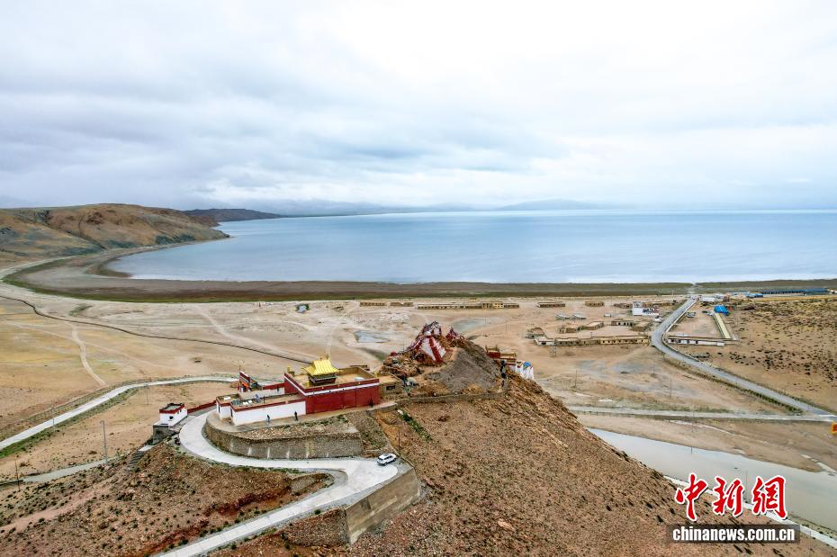 7月22日,從吉吾寺上空航拍瑪旁雍錯?,斉杂哄e與拉昂錯位于西藏阿里地區(qū)普蘭縣境內(nèi),兩湖僅有一堤之隔,卻擁有不同的地理特征和咸淡水之分,因而分別被譽為“圣湖”與“鬼湖”。(無人機(jī)照片)中新社記者 張祥毅 攝