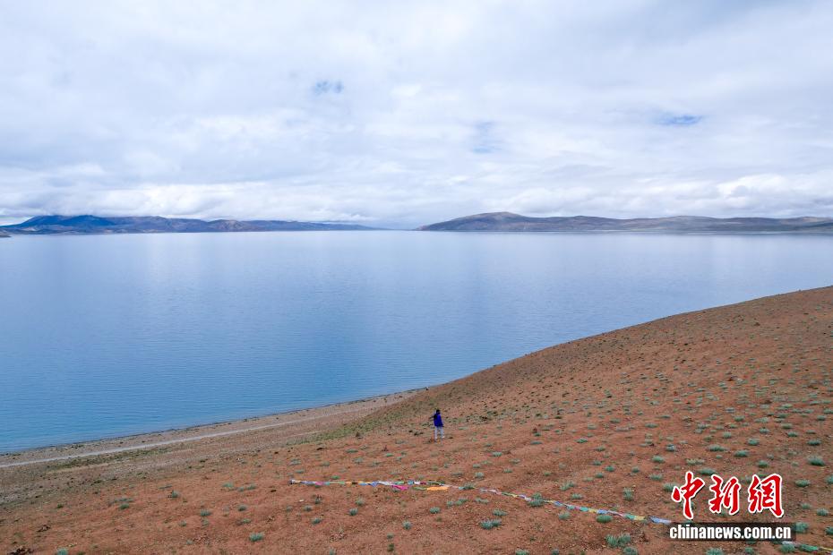 7月22日,游客游覽拉昂錯?,斉杂哄e與拉昂錯位于西藏阿里地區(qū)普蘭縣境內(nèi),兩湖僅有一堤之隔,卻擁有不同的地理特征和咸淡水之分,因而分別被譽為“圣湖”與“鬼湖”。每年夏天,兩湖與附近的岡仁波齊一道,吸引眾多游客前來賞景游覽。(無人機(jī)照片)中新社記者 張祥毅 攝