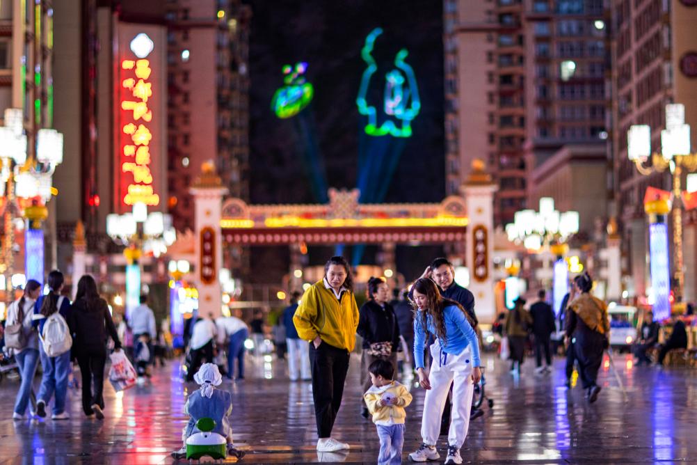 市民在昌都市茶馬廣場(chǎng)休閑。新華社記者 姜帆 攝