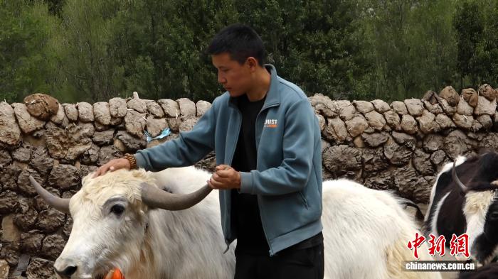 圖為達(dá)娃格桑為自己精心養(yǎng)殖的“娘亞”白牦牛梳毛。貢桑拉姆 攝