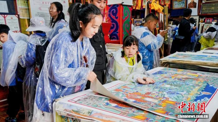 圖為“粵藏同行新時代·石榴籽一家親”活動現(xiàn)場學生體驗繪制民族團結卷軸繪畫。林芝市文旅局供圖