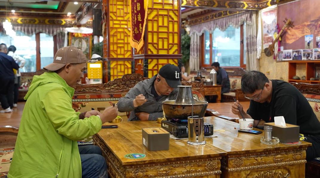 “以前全家靠放牧和種青稞過活,風(fēng)里來雨里去,一年攢不下幾個錢。現(xiàn)在開了這家藏式餐館,游客多的時候一天能接待上百桌,收入很好?!痹谠髯诖褰?jīng)營餐飲的次央說。
