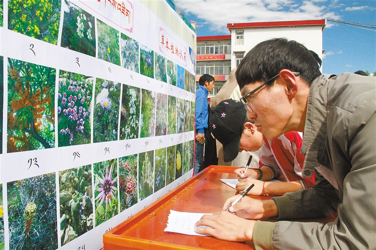 西藏藏醫(yī)藥大學(xué)學(xué)生參加藏醫(yī)藥草本植物認藥知識競賽。西藏藏醫(yī)藥大學(xué)提供
