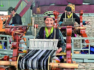 西藏山南市乃東民族嘩嘰手工編織專業(yè)合作社內(nèi),村民們正在編織純手工的澤帖爾。光明日報(bào)記者 李丹陽攝/光明圖片