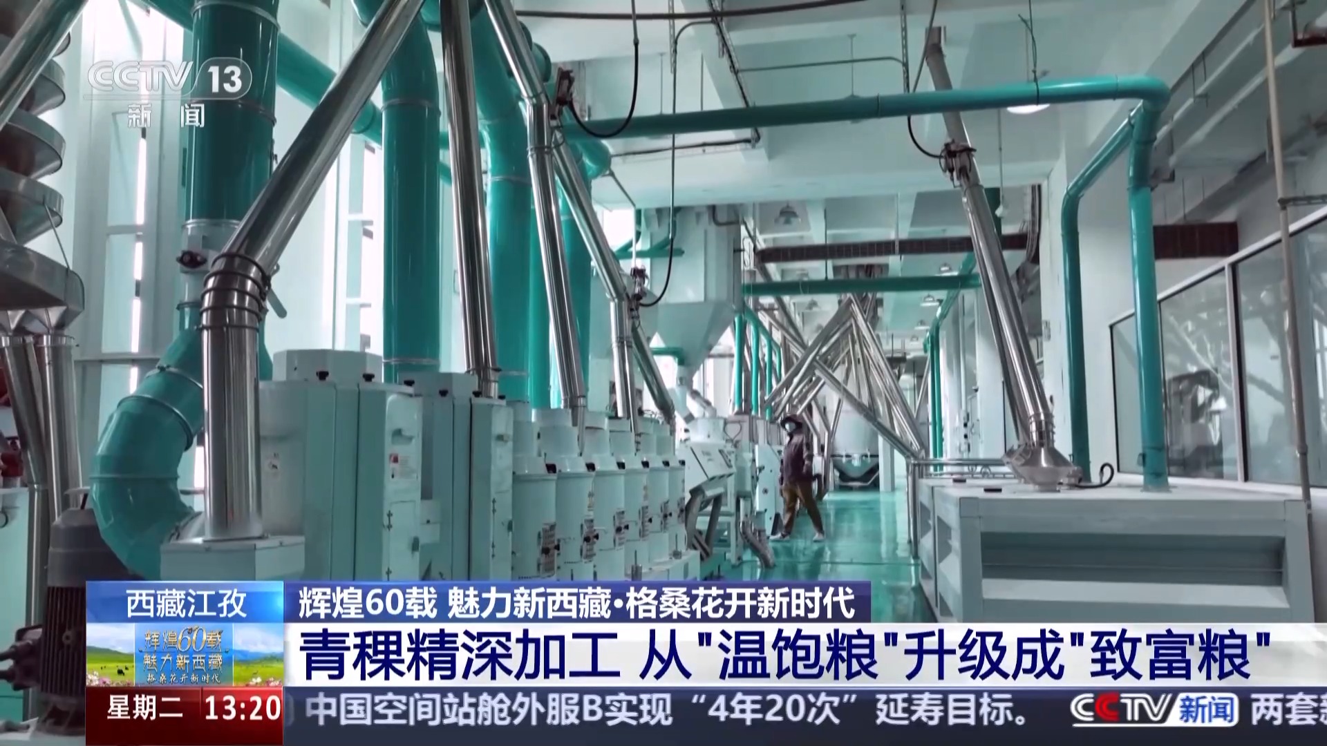 總臺(tái)記者 于晨:我現(xiàn)在是在江孜縣的一家專注于青稞產(chǎn)品研發(fā)的科技公司,去年9月,全國首條青稞谷物專用生產(chǎn)線在這里落地,填補(bǔ)了行業(yè)的空白,這讓青稞的得粉率由原來的60%以下提升至了70%以上。