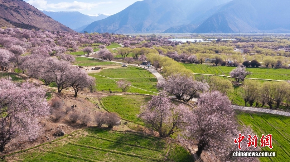 位于西藏拉薩北部山坳里的古剎帕邦喀周圍桃花盛開,吸引眾多游客前來觀光拍照。圖為帕邦喀周圍盛開的桃花和遠(yuǎn)處的布達(dá)拉宮。中新社記者 貢嘎來松 攝