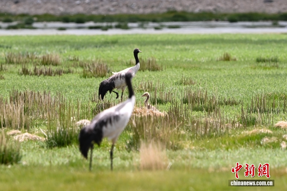 在海拔4700米的西藏自治區(qū)那曲市申扎縣濕地里,黑頸鶴一家在悠閑覓食。黑頸鶴是中國國家一級重點(diǎn)保護(hù)野生動物,屬高原特有鶴類,主要棲息于海拔2500米至5000米的高原沼澤地、湖泊及河灘等濕地環(huán)境。每年四月起,成對的黑頸鶴陸續(xù)飛抵西藏自治區(qū)那曲市申扎縣,在此繁育后代。中新社記者 貢嘎來松 攝