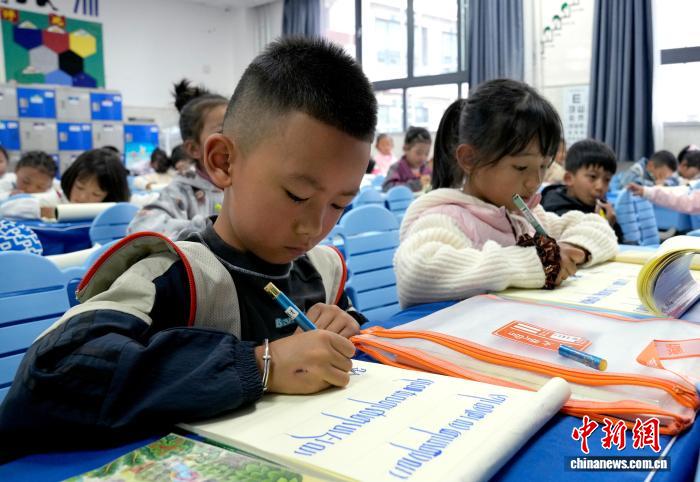 9月1日,拉薩市第一小學(xué)一年級(jí)二班的學(xué)生們?cè)诓卣Z(yǔ)文課上書寫藏文。近日,西藏拉薩市秋季學(xué)期開學(xué),各項(xiàng)教學(xué)工作有序開展。中新社記者 李林 攝