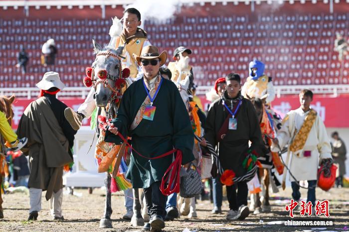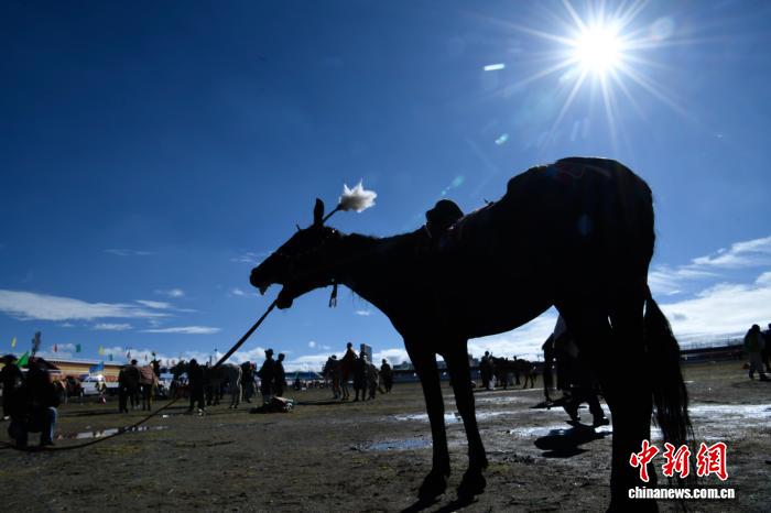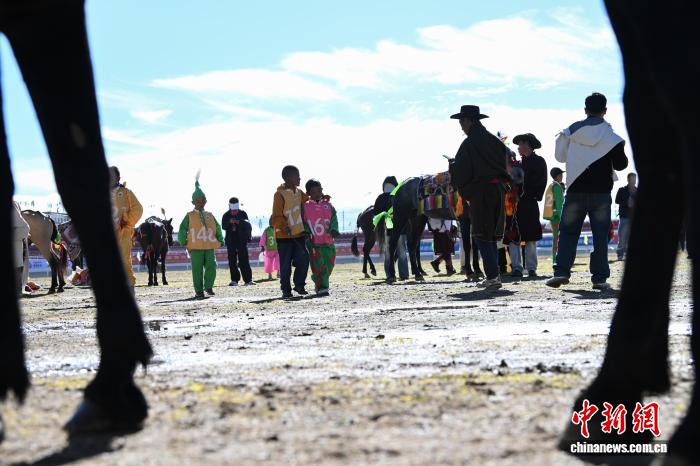 圖為參賽選手準(zhǔn)備參加恰青賽馬節(jié)傳統(tǒng)大跑決賽。中新社記者 貢嘎來松 攝
