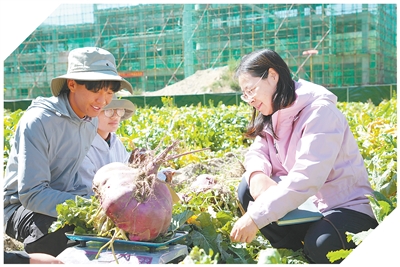 拉薩河畔,晨霧未散,曲水才納國家現(xiàn)代農(nóng)業(yè)示范區(qū)里一派豐收景象,一顆顆蕪菁大如籃球。中國科學(xué)院青藏高原研究所副研究員姜麗麗雙手托住其中一顆直徑近30厘米的蕪菁,激動地說:“沒想到能長這么大!”
