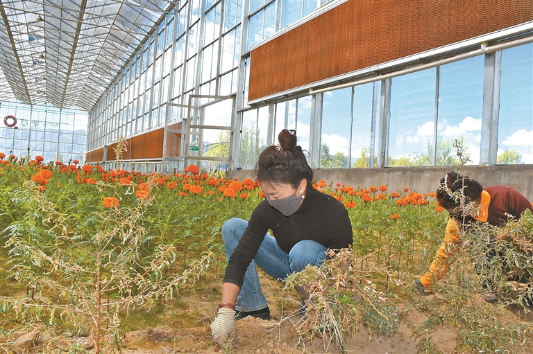 圖為在家門口實現就業(yè)的群眾在產業(yè)基地進行田間管理。記者 丹增平措 攝