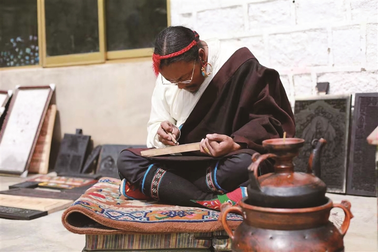 在傳承技藝的過程中,斯曲也面臨著不少挑戰(zhàn)。教徒弟時最大的困難就是讓他們靜下心來,因為這門手藝需要從小學起,不僅要學習拿工具,還要學習認字和雕刻?!耙郧肮馐菍W習雕刻文字,起碼要9個月時間,現(xiàn)在的孩子都很聰明,兩年基本就能掌握雕刻技藝。”斯曲欣慰地說。